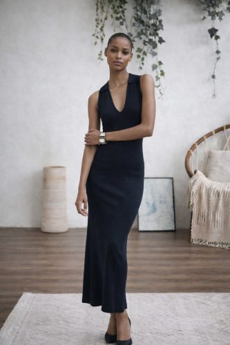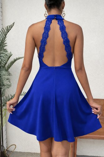 Kadın omuzlardan açık balıkçı yaka arkadan dantel detaylı kısa ithal krep elbise