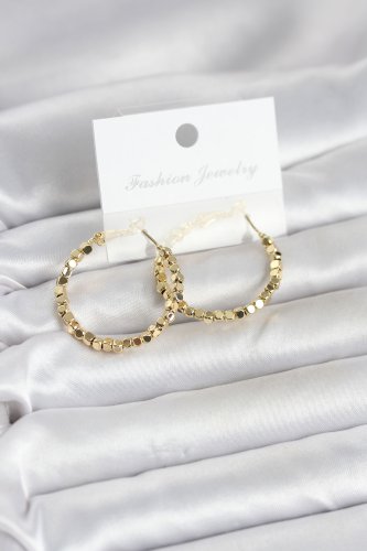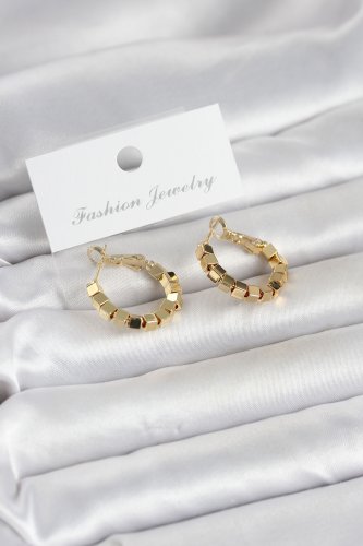 Pirinç Gold Renk Kare Halka Model Kadın Küpe