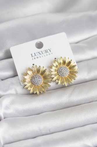 Papatya Model Zirkon Taşlı Pirinç Gold Renk Kadın Küpe